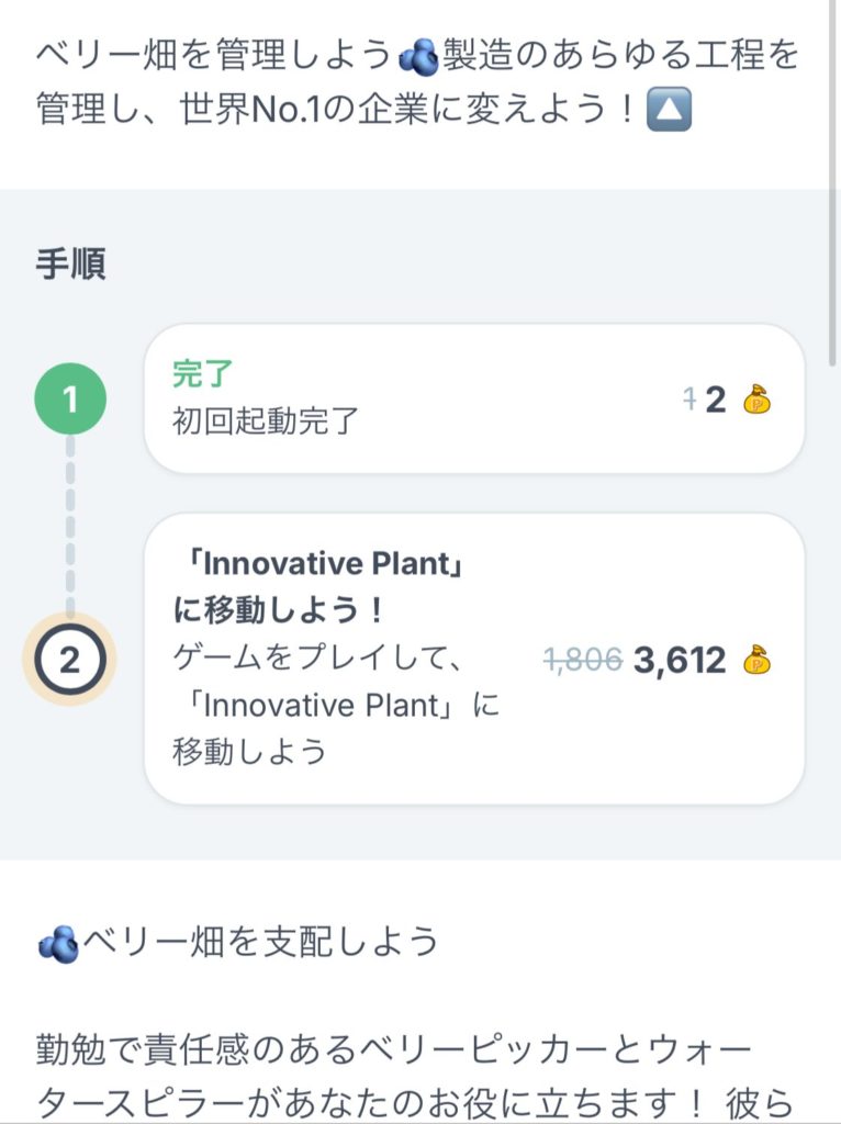 「BERRY FACTORY TYCOON」のポイ活攻略は、「いかに効率よく資金と名誉メダルを稼ぎ、ステージを進められるか」に尽きます。