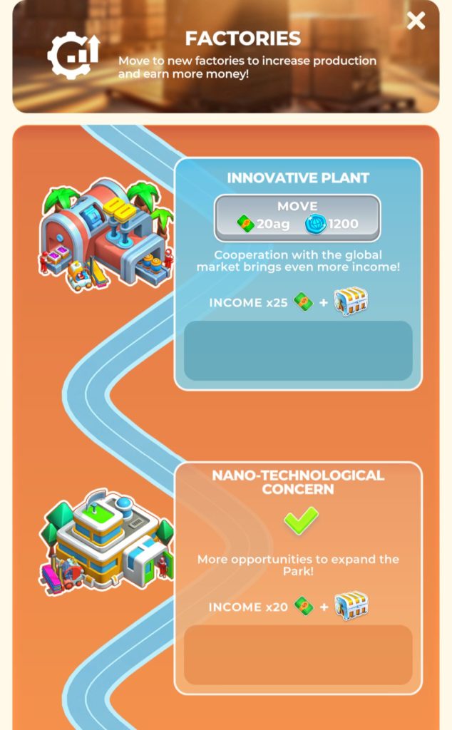また、製品の製造スピードが間に合っていない施設はスピードアップにも投資しましょう。製品を運ぶ機械のLvを上げて運搬効率を高めることも重要です。
