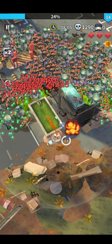 • 対エリート・ボス戦:エリートやボスは体が大きいため、プレイヤーが建物などの隅にいると、敵の攻撃判定が当たらなくなることがあります。また、ボスやエリートは本体中央に当たり判定がなく、完全に重なることで一方的に攻撃できます。背後からいければ無傷ですが、最悪1ダメージ覚悟で真正面から重なるのもありです。