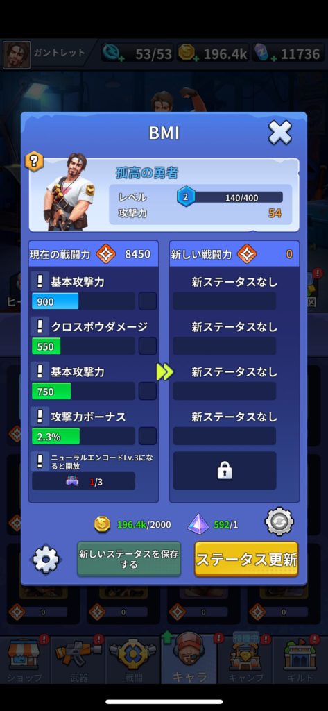 • BMI:アイテム「ニューラルエンコーダー」があれば使って強化できる枠を増やします。