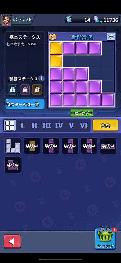 • 設計図:モジュールはどんどん合成しましょう。攻撃力があがりつつ形状が小さくなるのでお得です。