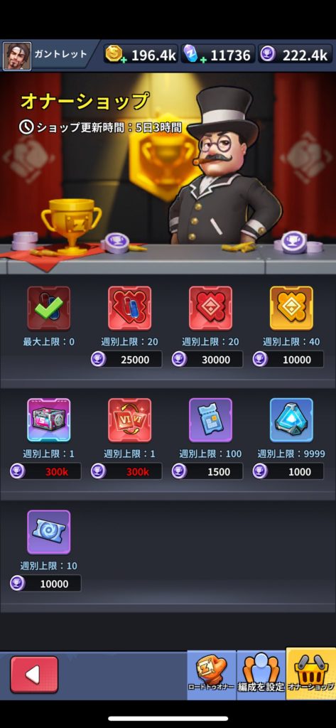 • 限界挑戦:デイリー報酬の獲得を目指す程度で良いでしょう。